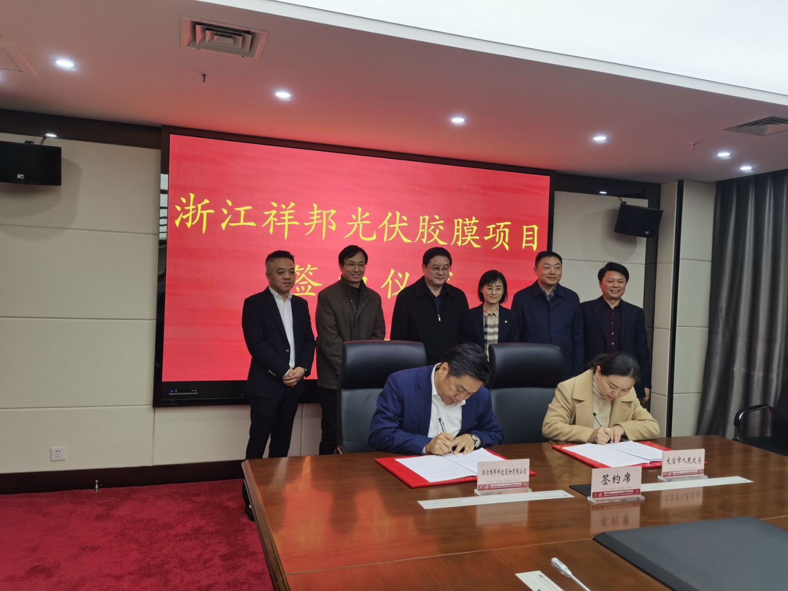 祥邦科技舉行湖北大冶市光伏膠膜項(xiàng)目簽約儀式