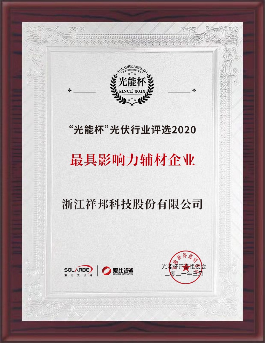 祥邦科技再次榮獲“最具影響力輔材企業(yè)”大獎(jiǎng)