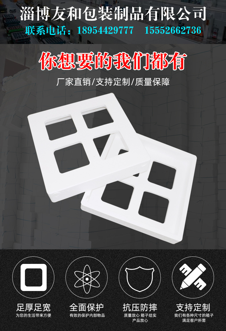 介紹參數圖冊 ????淄博友和包裝制品有限公司是專業的山東泡沫包裝箱加工廠家,本廠主要產品有:泡沫包裝箱,泡沫保鮮箱,水果蔬菜泡沫包裝箱,水果蔬菜泡沫保鮮箱,瓷磚泡沫包裝箱等,產品暢銷全國,深受用戶好評。泡沫包裝定做可以聯系我們網站 http://m.webdl.cn/ 上電話,我們會第一時間跟您聯系。 上一篇節能LED燈具包裝箱 下一篇電磁包裝泡沫箱