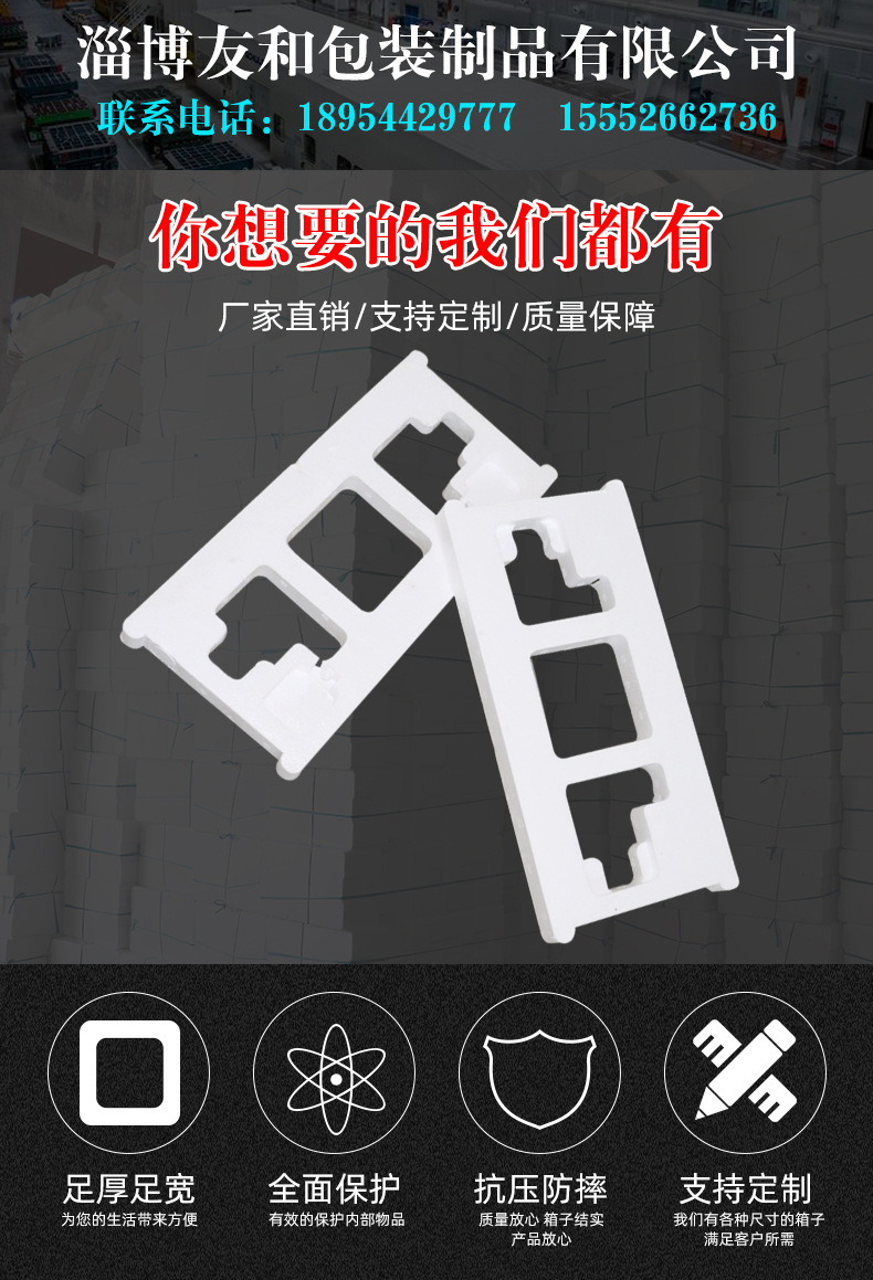 介紹參數圖冊 ????淄博友和包裝制品有限公司是專業的山東泡沫包裝箱加工廠家,本廠主要產品有:泡沫包裝箱,泡沫保鮮箱,水果蔬菜泡沫包裝箱,水果蔬菜泡沫保鮮箱,瓷磚泡沫包裝箱等,產品暢銷全國,深受用戶好評。泡沫包裝定做可以聯系我們網站 http://m.webdl.cn/ 上電話,我們會第一時間跟您聯系。 上一篇電焊鉗泡沫包裝箱 下一篇電熱鍋防壓泡沫包裝箱